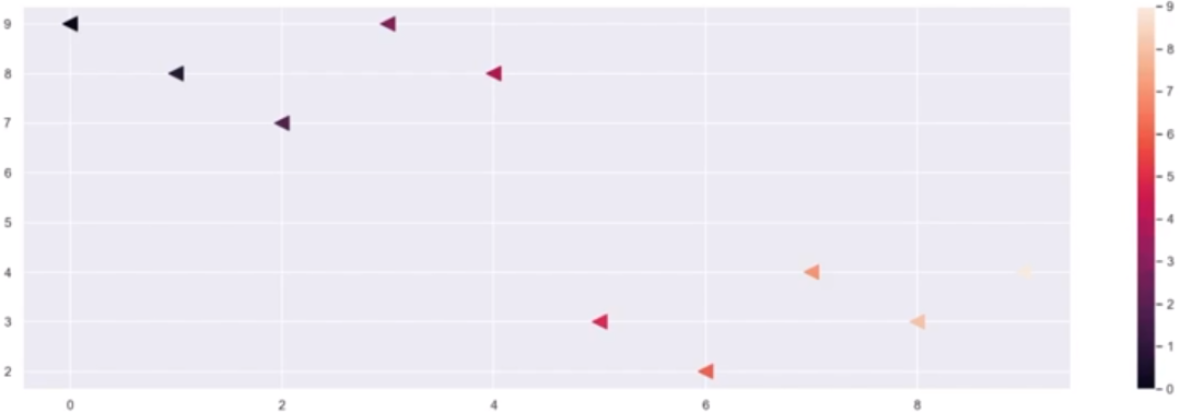 plt . scatter( x축 데이터, y축 데이터, s=, c=, marker=' ' )
